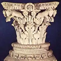 Капітель коринфської колони храму, зображення пар баранів