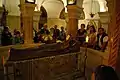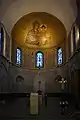 Священний одр оточують шість вівтарів, дарувальниками яких стали: Австрія, Бразилія, Кот-д'Івуару, Угорщина, Венесуела, США. На них зображені свої святі і апостоли і їм, властиві власні національні стилістичні особливості. Головний вівтар в крипті присвячений Успінню: на фресці зображені апостоли, які оточили тіло Богородиці, і Христос, що возносить Її душу на Небо. Також тут зображені нинішня церква і її попередниці. Стовп під вівтарем — залишок візантійської колони.