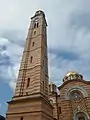 Дзвіниця храму має висоту 47 метрів, а куполи — 22,5 метра.