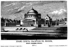У оголошеному імператором конкурсі взяли участь найкращі зодчі, серед яких були Джакомо Кваренгі, Андрій Вороніхін, Авраам Мельников, Олександр Вітберг, Василь Стасов. Було представлено 20 варіантів проєкту храму, з яких був затверджений проєкт архітектора Олександра Вітберга. Храм передбачалося звести на Воробйових горах, між Смоленською і Калузькою дорогами. Собор мав складатися з трьох частин, пов'язаних між собою і символізувати Втілення, Преображення та Воскресіння. У нижньому храмі передбачалося поховати останки полеглих в боях під час Вітчизняної війни 1812 року.