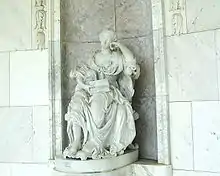 Сидяча статуя Вільгельміни Прусської в натуральну величину в ниші напівкруглої арки на вузькій задній стіні виповнена в майстерні скульпторів братів Йогана Давіда та Йогана Лоренца Вильгельма Ренц. Прикладом для мармурової скульптури став портрет кісті придворного живописця Антуана Пена. Медальйони на основі колон із зображеннями дружніх пар часів античності та книга в її руці закликані нагадувати про кохання маркграфіні до давньої історії.