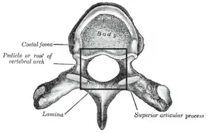 Зображення грудного хребця. У центрі — хребетний отвір