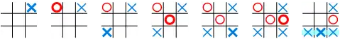 Дерево ігрових ситуацій для гри хрестики-нулики, де гравець за «хрестики» ходить першим і діє за наведеним вище алгоритмом, а гравець за «нулики» може чинити як завгодно (причому наведено по одній вершині для раціонального і для нераціонального вчинку, тобто будь-якого іншого), складається з 50-ти вузлів