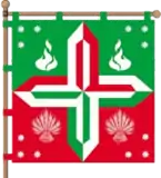 - у 1-му зеленому полі — 2 срібні зображення полум'я і 6 срібних восьмипроменевих зірок;