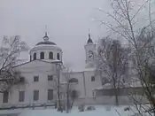 ![]() Хрестовоздвиженська церква взимку, вигляд спереду | |
