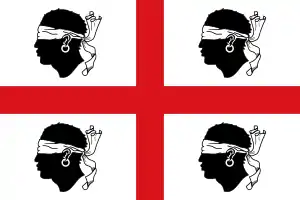 Цей геральдичний герб був безпосередньо віднесений до Королівства Арагон з середини XV століття, а також був прийнятий як прапор Королівства Сардинія з другої половини XV століття, коли острів був територією Арагонської корони. На прапорі Сардинії головам маврів зав'язали очі. У сучасному прапорі Сардинії голови звернені вправо, а «пов'язки на очах» перетворилися на пов'язки на головах.