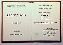 | Категорія:Нагороджені Хрестом Вигнанців до Сибіру (2) | ||||