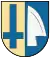 Герб комуни Фойєртален у Швейцарії: у блакитному полі срібний хрест під лезом коси того ж металу. |