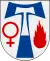 Герб парафії Рьоньо в Швеції: у срібному полі обтяжений меншим срібним тау-хрестом хрест святого Антонія між червоними алхімічним символом міді та полум'ям. | |