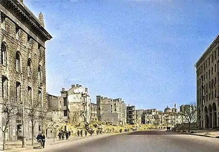 Руїни будинку № 30 одразу після уцілілого будинку № 32