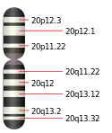 Різноманітні аномалії в структурі хромосоми 20 можуть призводити до виникнення наступних хвороб та розладів:[2]
