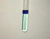 Додавання до дихромату перекису водню, сірчаної кислоти та органічного розчинника (етеру) призводить до утворення пероксиду хрому CrO5, який екстрагується в органічний шар: