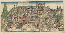 Ілюстрація з Нюрнберзької хроніки, що зображує зруйнування Єрусалима під час вавилонського правління