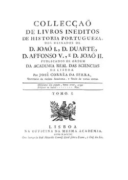- Pina, Ruy de. Chronica do Senhor Rey D. Duarte // Collecção de livros ineditos de historia portugueza / ed. J.F. Correia da Serra. Lisbon: Academia das Ciências de Lisboa, 1790. T. 1. p. 71-194.