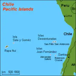 - Острів Александра Селькірка (ісп. Isla Alejandro Selkirk), 44,6 км², 160 км на захід від острова робінзона Крузо