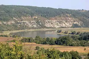 ![]() Дністер і скелястий берег з нижньокрейдовими відкладами Дністер і скелястий берег з нижньокрейдовими відкладами | |