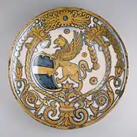 Кераміка Губбіо. Таріль з гербом і зображенням сфінкса, до 1550 року. Художній музей Волтерс, США.