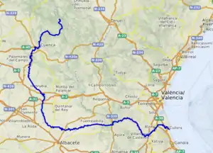 | Притоки: | Lezuza Riverd, Huécard, Escalona Riverd, Gritos Riverd, Albaida Riverd, Sellent Riverd, Cabrield, Magro Riverd, Valdemembra Riverd, Altarejos Riverd і Moscas Riverd |