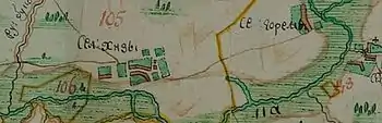 - № 3879 фільварок Хізов, дворянки Л. М. Черепанової, Рогачевський повіт Могилевської губернії довгота 30.60870 широта 53.10640;