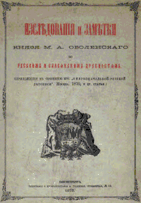 Князь Михайло Андрійович Оболенський до останніх днів життя з гарячою любов'ю переймався долею вітчизняної історії. Останньою з учених праць, виданих ним, було «Декілька слів про первісний Руський літопис» (Москва, 1870). За думкою і планом автора, за цією загальною частиною його праці повинні були слідувати пояснювальні додатки, де в окремих монографіях передбачалося розглянути деякі найважливіші питання руської старовини, як то: питання про походження Русі, про найдавніший її побут і писемність. Покійному князеві не вдалося виконати цей намір, не вдалося цілком висловитися і привести до бажаного кінця свої праці, плід багаторічних занять русько-слов'янськими старожитностями. За життя його віддруковано тільки два перші аркуші «Додатків», решта частково в закінченому, більшою ж частиною в незакінченому, так би мовити, в чорновому вигляді зберігалася в його портфелі. При всьому тому і ці уривчасті нотатки містять у собі стільки оригінальних і нових поглядів, стільки іноді гідних подиву та сміливих зближень і пояснень, що було б шкода, якби вони не побачили світу. Ось чому дочка його, княгиня Анна Михайлівна Хілкова, побажала зробити доступною для всіх «учену спадщину» свого батька. У цьому томі зібрано майже все, що знайшлося в паперах князя Михайла Андрійовича, і надруковано без будь-яких змін і додатків. Читач знайде тут багато уривчастого та недомовленого, багато такого, що тільки розбудить, але не задовольнить його допитливості. У всякому разі, запалити думку, навести дослідників на нові міркування — сама по собі заслуга важлива, а тому видавець сподівається, що посмертні вчені праці князя Оболенського в галузі вивчення вітчизняних старожитностей, які виходять нині в світ, не будуть зайвими.