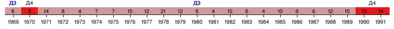 | 1968 | Клас Б - РРФСР, 1 зона | 3 | 38 | 14 | 11 | 13 | 30 | 29 | +1 | 39 | 9. |