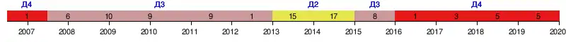 Легенда: Іг - матчі, В - перемоги, Н - нічиї, П - поразки, ЗМ - забиті м'ячі, ПМ - пропущені м'ячі, +/- - різниця м'ячів, B - очки, червоний колір - виліт, зелений колір - підвищення, фіолетовий колір - реорганізація, зміна групи або турніру