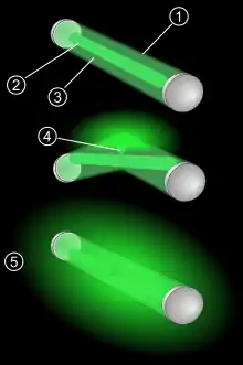 «Сяючі палички» випромінюють світло при змішуванні двох хімічних речовини. Паличка складається з крихкого контейнера (скляної капсули), який поміщений в гнучку зовнішню пластикову оболонку. Контейнер і оболонка заповнені різними розчинами. При згинанні зовнішньої оболонки, внутрішній контейнер тріскається, при цьому відбувається змішування речовин, що викликає відповідну хімічну реакцію, яка супроводжується світінням. Після розламування трубку струшують для кращого перемішування двох компонентів.