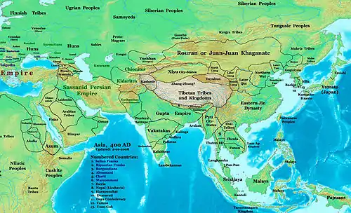 У III ст. західні хіоніти підійшли до північносхідного кордону Сасанідської держави. У 1-й пол. IV ст., коли внаслідок внутрішних повстань Юебань фактично розкололася, орди західнних хіонітів (ефталіти, кідарити і алхон-гунни) створити нову конфедерацію племен, яку намагалися активно розширювати.