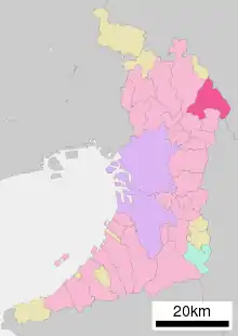 - Хіґашіде М. Історія міст префектури Осака. Адміністративний поділ Японії. (японською). Архів оригіналу за 25 червня 2013. Процитовано 20 вересня 2012.