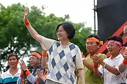 Цай привела ДПП до історичної перемоги на місцевих виборах, що відбулись 29 листопада 2014 року, на яких партія забезпечила керівництво 13 з 22 муніципалітетів та округів Тайваню. Приголомшлива перемога ДПП на виборах зміцнила позиції Цай у партії та поставила її на перше місце у президентських виборах 2016 року; вона оголосила про свою другу заявку на пост Президента 15 лютого 2015 р. [28] 16 січня 2016 року вона переконливо перемогла на виборах, набравши 56,12% голосів, обійшовши свого опонента Еріка Чу, який набрав 31,07% голосів. [29]