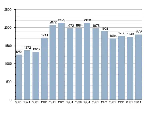 Станом на 31 грудня 2014 року в муніципалітеті офіційно проживало 68 іноземців з 15 країн, серед них 50 громадян країн Євросоюзу та 7 громадян України.[4]
