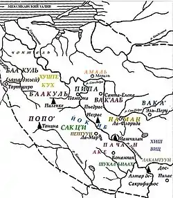 Разом з тим до 620-х років немає відомостей про діяльність його правителів. У першій чверті VII ст. Сакц'і вступила в союз з Баакульським царством проти Йокіб-К'інського царства. Але у 628 році цей союз зазнав поразки, й ахав (цар) К'аб-Чан-Те потрапив у полон. Останній вимушений був визнати владу Йокіб-Кіна.