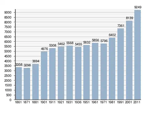 Станом на 31 грудня 2014 року в муніципалітеті офіційно проживало 380 іноземців з 31 країни, серед них 163 громадяни країн Євросоюзу та 10 громадян України.[4]