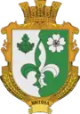 Квадратне полотнище поділене хвилясто вертикально на дві рівновеликі смуги — білу древкову і вільну зелену. На лінії перетину хвилясто розтята лілея змінних з полями кольорів. У верхньому древковому куті три зелених дубових листочки, середній вертикальний, менші бічні нахилені вліво і вправо, що виходять з однієї точки, у лівому вільному куті біла квітка яблуні.