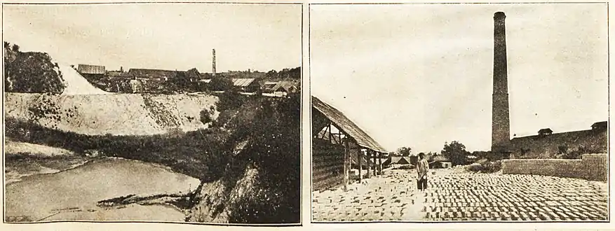 Кар'єр для видобутку білого піску (зліва), сушка цегли просто неба (справа)