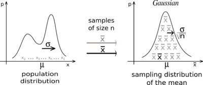 Наприклад, отримано вибірку, яка містить велику кількість спостережень, кожне з яких було отримано випадковим чином і вони не залежать від інших спостережень, і на основі значень цих спостережень розраховують арифметичне середнє. Якщо цю процедуру повторити багато разів, центральна гранична теорема стверджує, що розраховані середні значення будуть мати нормальний розподіл. Простим прикладом цього є багаторазове підкидання монети при яких імовірність випадіння заданої кількості гербів у всій послідовності подій буде наближатися до нормальної кривої, із середнім, що знаходитиметься по середині від загальної кількості випадань монети на кожну сторону. (Граничне значення для нескінченної кількості підкидань, буде дорівнювати нормальному розподілу.)