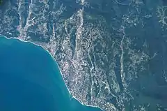 Район розташований між Мамайським перевалом і річкою Верещагинка. Являє собою безпосередньо сам історичний Сочі, за винятком Південної частини старого міста (Верещагинська Сторона), що відноситься до Хостінскому району. Межує з Хостинським і Лазаревським районами. Особливість району в тому, що він не має у своєму підпорядкуванні земель за межами міської межі. Територія — 30,37 км²[2][3].