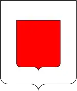 Розділений центральний щит (оскільки він трохи більший за серцевий щит) з орлом біля розсычення і трьома червоними діагональними смугами