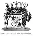 Герб графа Тауенцієна фон Віттенберга маэ серцевий щит із сімейним гербом розміщений на середньому щиті, який, у свою чергу, знаходиться на головному щиті