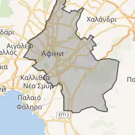 У рамках реформи уряду Каллікратіса 2011 року регіональний підрозділ Центральні Афіни був створений із частини колишньої префектури Афін. Він поділений на 8 муніципалітетів. Це (номер, як на карті в інформаційному полі):[1]