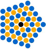 У центрі міститься точка / кружечок (для об'ємних зображень використовуються назви камінь, кришталева кулька), навколо якого послідовно розташовується щоразу більше кружечків, починаючи з 5, які утворюють вкладені шари п'ятикутників, у кожному наступному шарі на п'яти ребрах п'ятикутника додається один кружечок, тому кількість кружечків утворює послідовність чисел кратну 5: 5, 10, 15 і т. д.