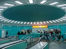 Колонна трисклепінна глибокого закладення. Похилий хід починається зі східного торця і має тристрічковий ескалатор.