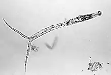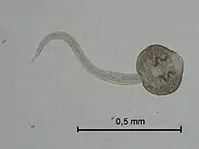 Церкацій трематоди Schistosoma, збільшення 150х.