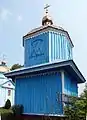 На південний захід від церкви знаходиться дзвіниця, дата будівництва невідома. Покрита залізом у 1882 році і тоді ж пофарбована в зелений колір. Характерний приклад «восьмерика на четверику». Верхній ярус відділений від нижнього розвинутим карнизом. Зовнішні стіни обшиті вертикальними дошками з нащільниками. Колористика в 2016 р. — синьо-біло-жовта.[3][4][5]