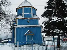 9. При цій церкві є стара дерев'яна церква побудована в 1755 р.