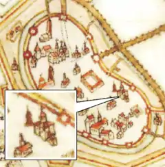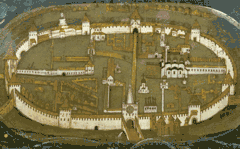 Перебудований в XV столітті Борисоглібський собор зображений на іконі «Бачення паламаря Тарасія» кінця XVI століття, прикрашений величезною фрескою-іконою й увінчаний двома головами. Одна з них (маленька) символічно вказує на існування приділа Андрія Стратилата. Досить чітко можна побачити приділ Андрія Стратилата на шведському плані 1611 року, де він зображений з півдня у одноголової основної площі.