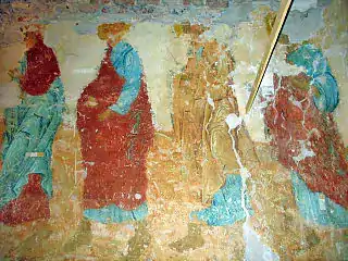 На північній стіні західного обсягу церкви в нижньому регістрі зображена процесія святих, звернена до вівтаря. Першим зі сходу представлений Андрій Стратилат.