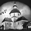 Церква Архістратига Михаїла. Зовнішній вигляд з північного заходу. Світлина П. Жолтовського. 1930 р. Кольорова реконструкція. Варіант 2.[47]