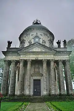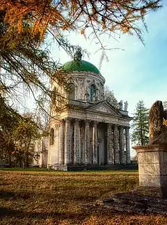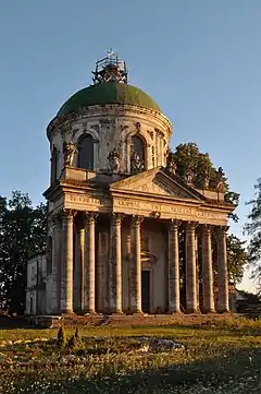 Збудований у формі барокової у ротонди на замовлення Вацлава Петра Жевуського як родова усипальниця.