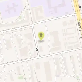 Знаходилася церква Воскресіння Христового у кварталі сучасних бульвару Перова, вулиць Микитенка, Сєрова та Стальського, позаду сучасного авторинку, ближче до вулиці Сєрова[2].